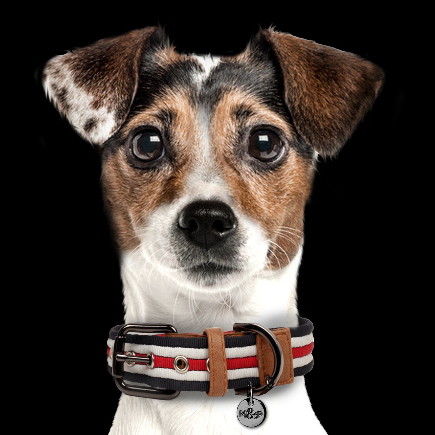 La medaglia in titanio incisa con il logo "M&P" aggiunge un tocco di eleganza al tuo cane.