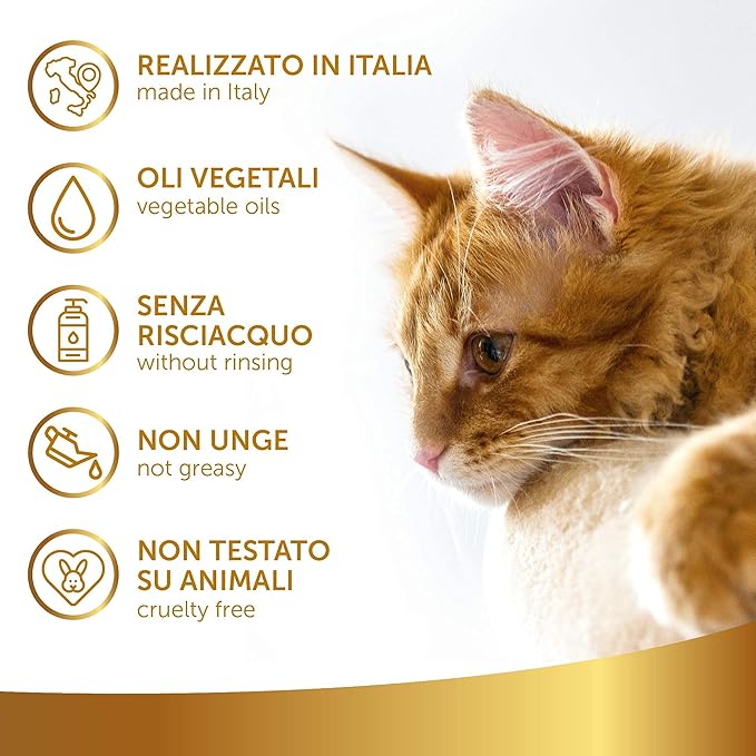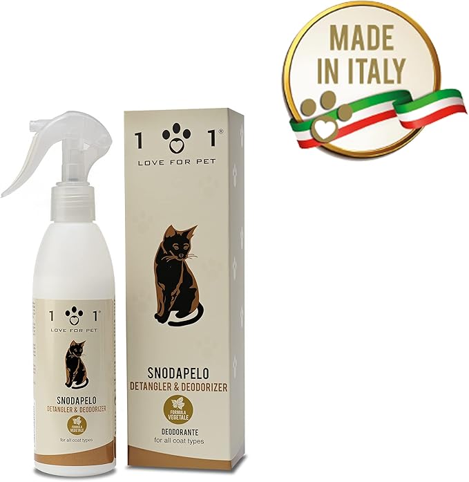 Lo SNODAPELO 101 per Gatti è una lozione che permette di districare con dolcezza i nodi più difficili; oltre all'azione scioglinodi, aiuta a respingere la polvere e lo sporco, e conferisce al pelo morbidezza, resistenza ed elasticità. Ravviva il colore del mantello, rendendolo lucido, profumato e setoso. Non unge e non necessita di risciacquo. Ideale per la cura settimanale del mantello del gatto, può essere utilizzato da solo o prima di un bagno con il nostro Shampoo Dolci Fusa.