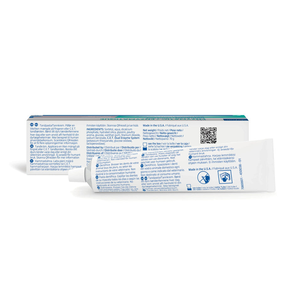 Infine, il sapore aromatizzato con pollame rende il C.E.T. Dentifricio Enzimatico molto appetibile, e aiuterà a rendere la pulizia dei denti un momento piacevole da condividere con il proprio animale.