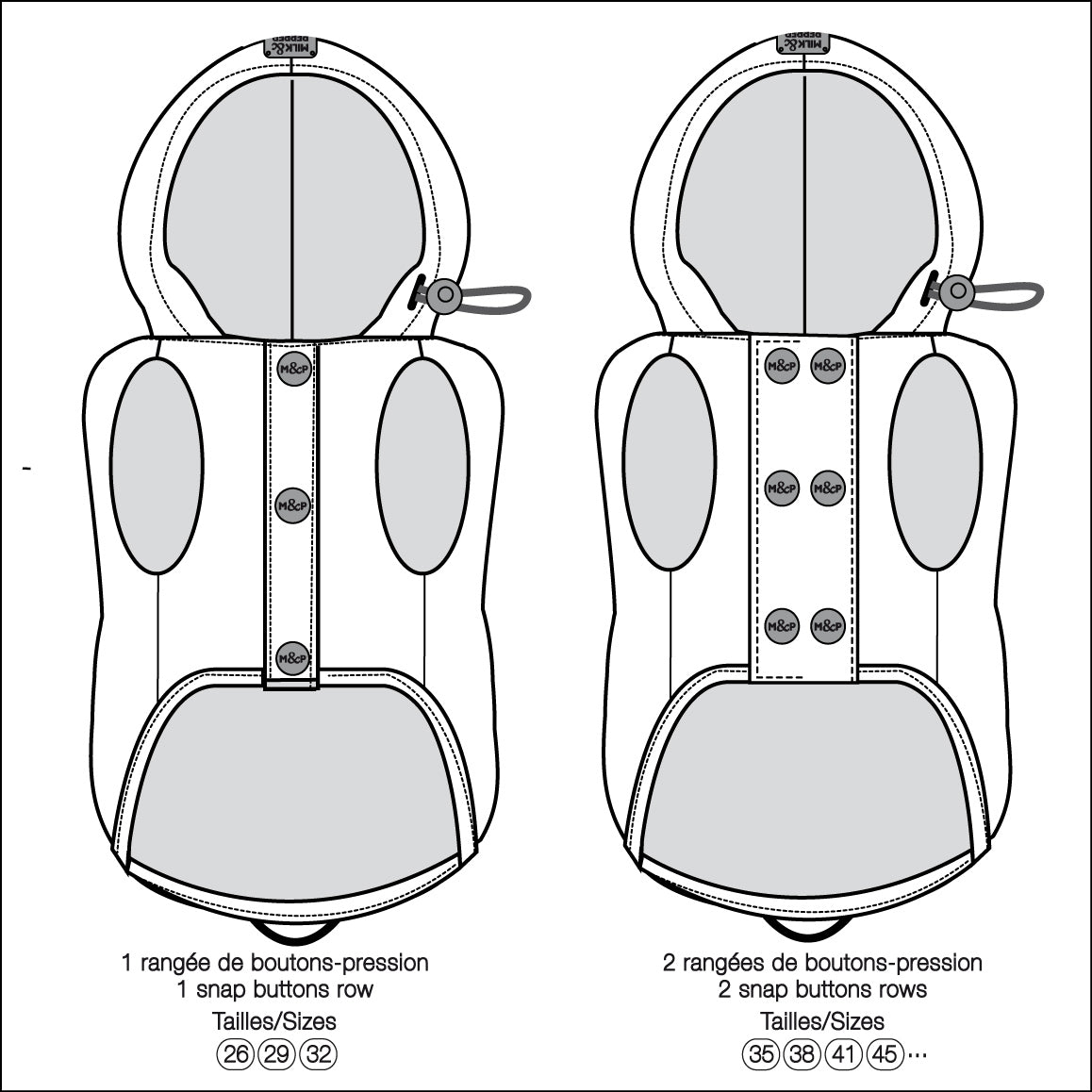 Fila semplice di bottoni automatici dalla taglia 26 alla 32 / Doppia dalla taglia 35 alla 45