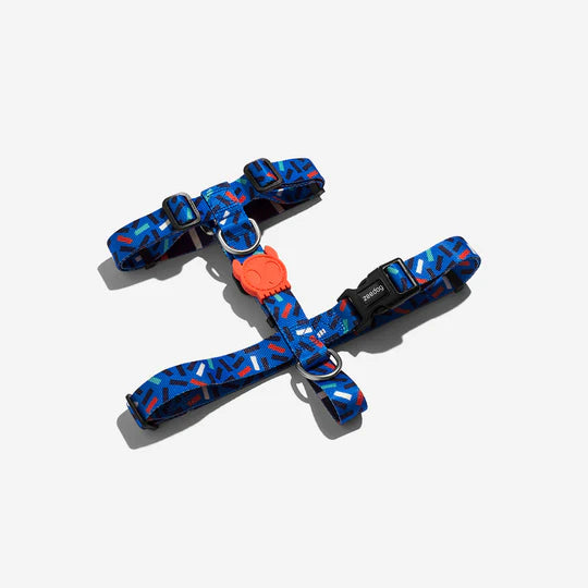 Scegli la tua pettorina ad H nella variante Atlanta, la fantasia colorata su fondo Blu elettrico, perfetta per un look vivace e sportivo, per dei veri campioni di stile sia per una passeggiata in città che nella natura.