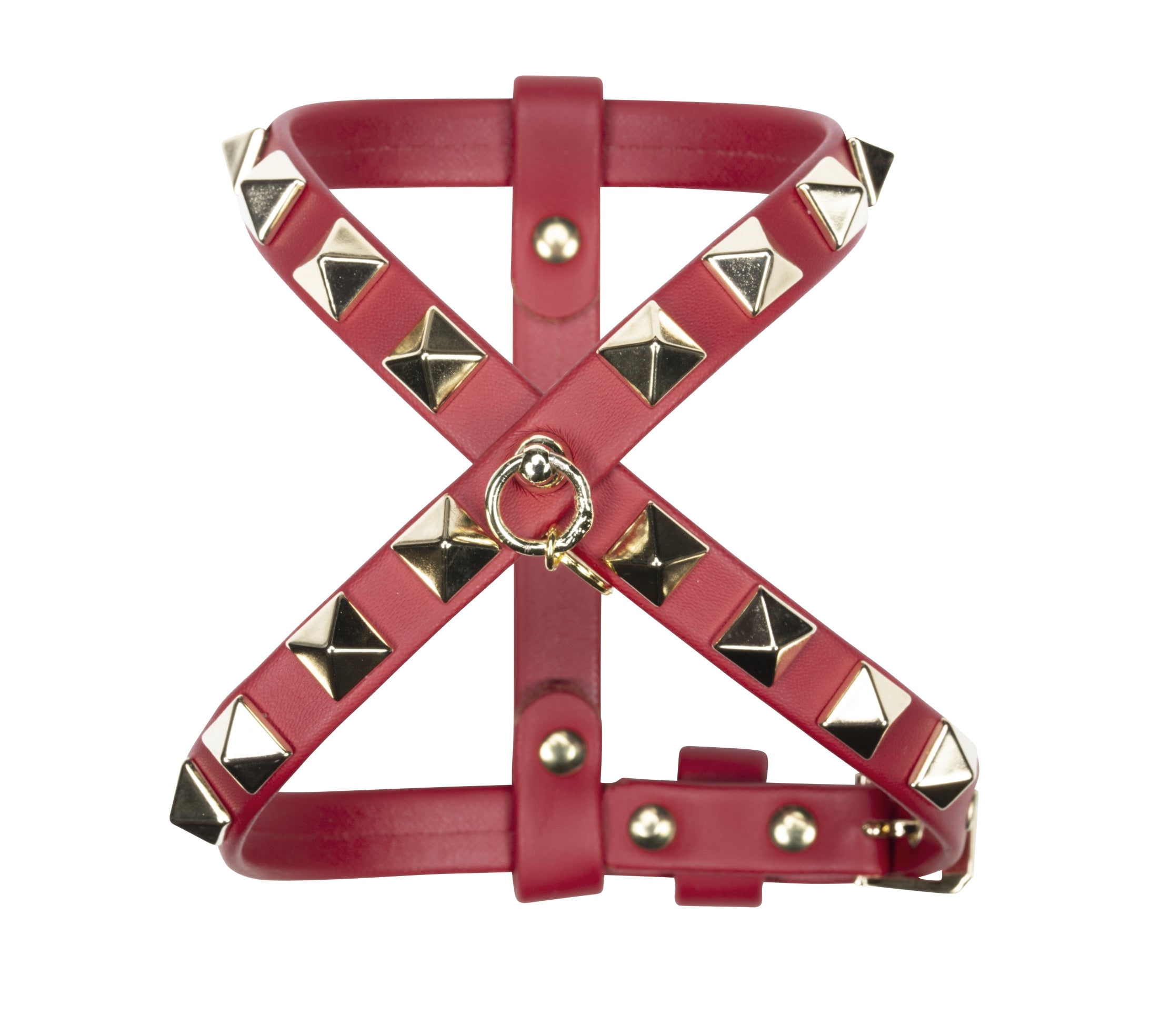 Morbida pettorina in pregiata eco-pelle, decorata con rivetti di alta qualita' Nickel Free e medaglietta.