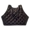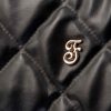 Finissima pelle sintetica trapuntata impreziosita dall’elegante dettaglio nappa tono su tono