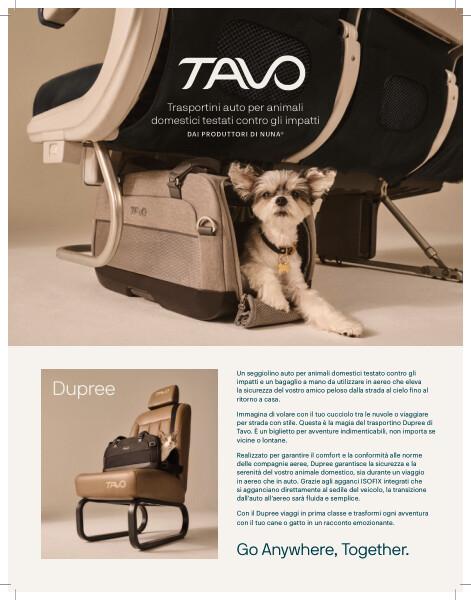 Realizzato per garantire il comfort e la conformità alle norme delle compagnie aeree, Dupree garantisce la sicurezza e la serenità del vostro animale domestico, sia durante un viaggio in aereo che in auto. Grazie al Sistema ISOFIX integrato che si aggancia direttamente al sedile del veicolo, la transizione dall'auto all'aereo sarà fluida e semplice.