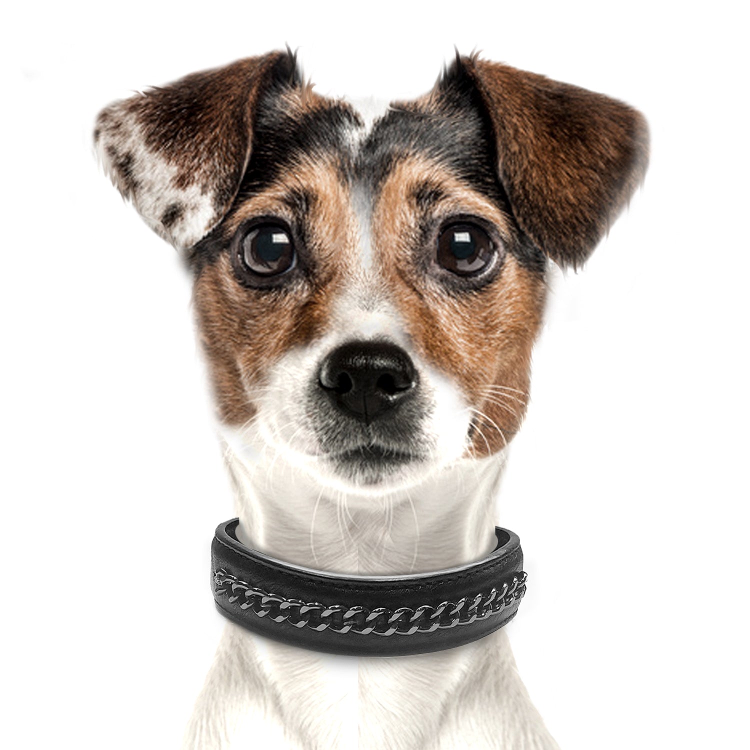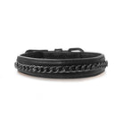 Dieses auffällige schwarze Halsband aus Öko-Leder ist perfekt für jeden Anlass. Mit einer dekorativen titanfarbenen Metallkette, die mit 2 Nieten befestigt ist, verleiht dieses Halsband einen Hauch von Eleganz und Sicherheit. Mit seinem robusten und widerstandsfähigen Design ist es die ideale Ergänzung zu Ihrem einzigartigen Stil.