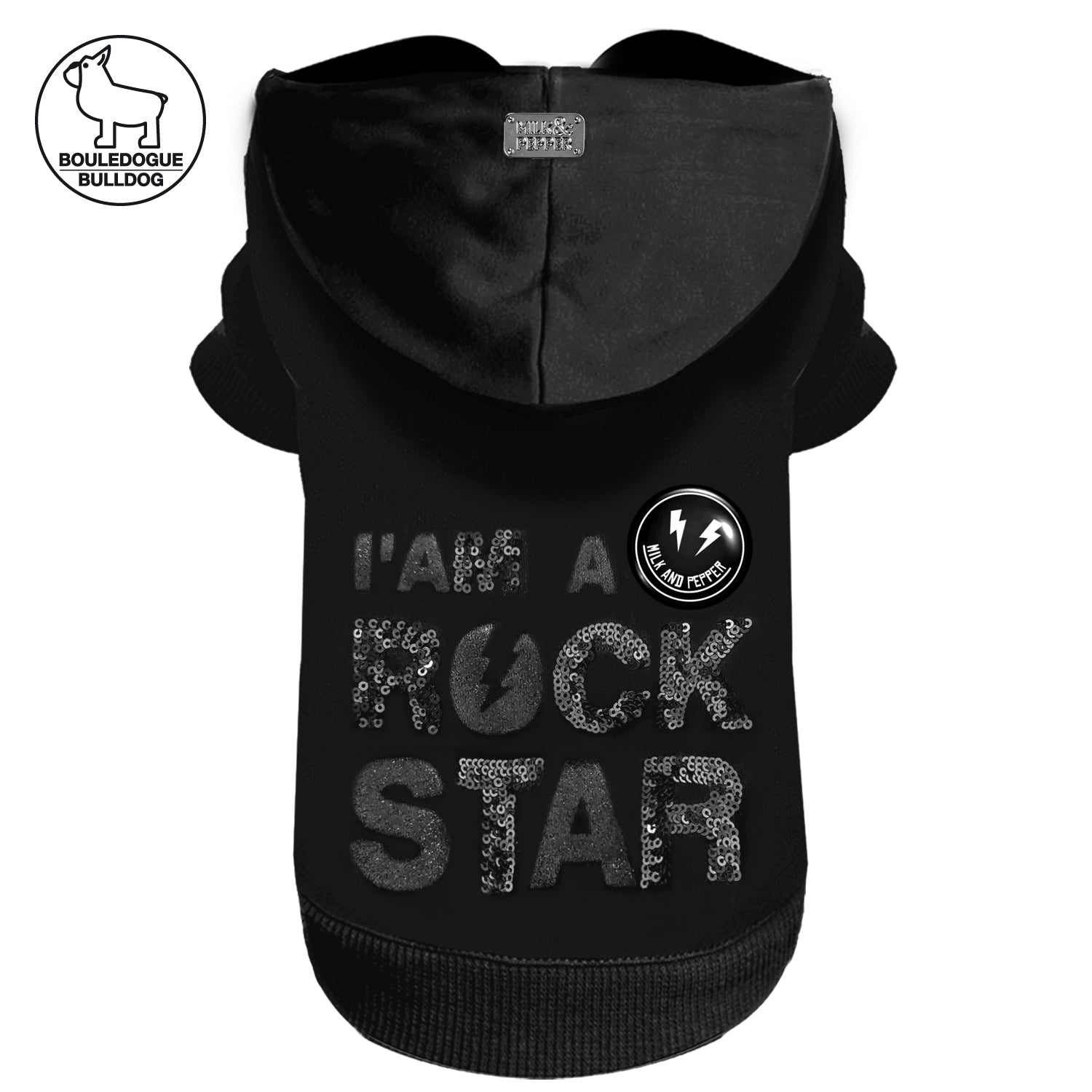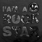 Schwarzes Fleecematerial mit „I’m a Rock Star“-Schriftzug in Schwarz und glitzernden Pailletten