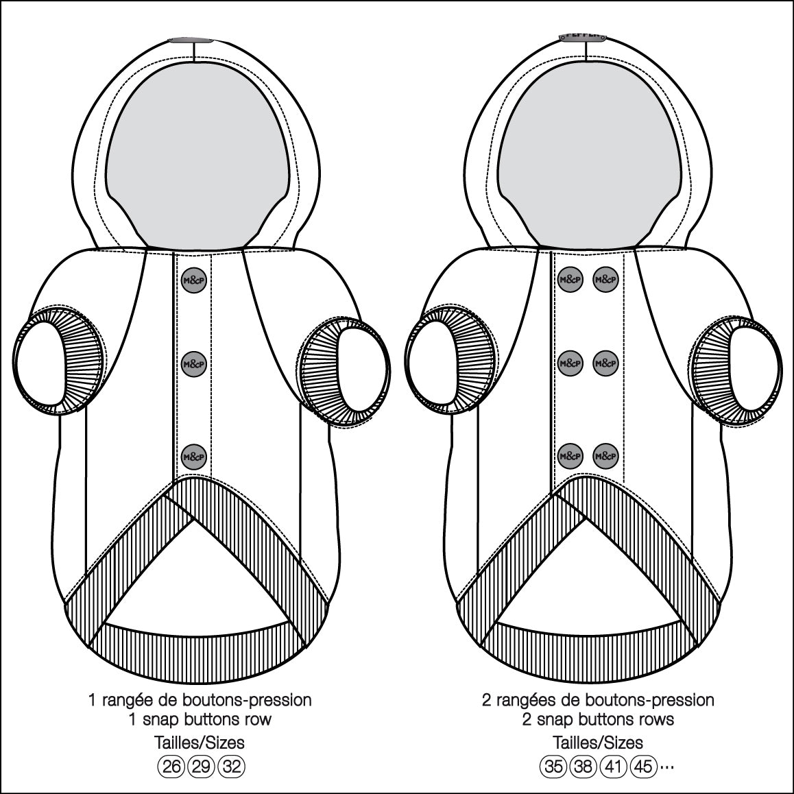 Öffnung an der Bauchseite mit in Titanmetall eingravierten „M&P“-Druckknöpfen