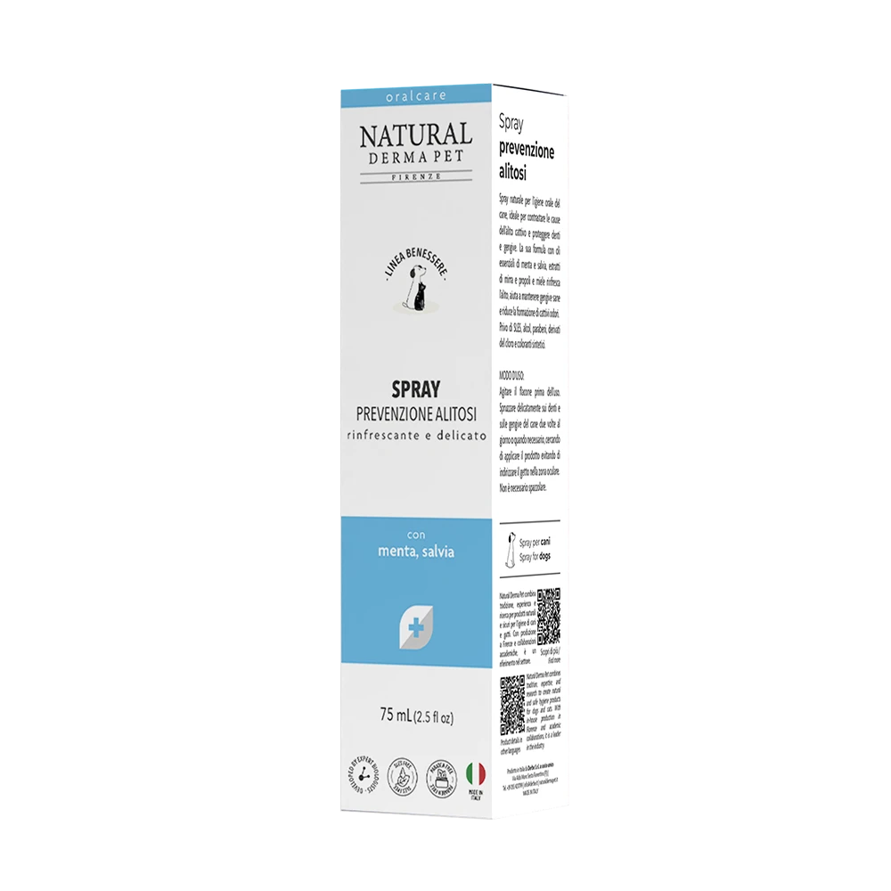Natürliches Spray zur Mundhygiene von Hunden, entwickelt zur Bekämpfung Ursachen von Mundgeruch und dazu beitragen Schutz für Zähne und Zahnfleisch . Die Formel ist mit ätherischen Ölen aus Minze und Salbei angereichert, die ein angenehmes Frischegefühl verleihen und zur Mundgesundheit beitragen. Für länger anhaltenden frischen Atem . Extrakte aus Myrrhe und Propolis. Traditionell werden sie für ihre reinigenden und schützenden Eigenschaften geschätzt und fördern die Mundgesundheit und trägt zur Gesunderhaltung des Zahnfleisches bei. Honig , ein natürliches Weichmacher, macht die Rezeptur sanft zu den Schleimhäuten. Regelmäßige Anwendung hilft, Mundgeruch vorzubeugen und unterstützt die tägliche Mundhygiene.