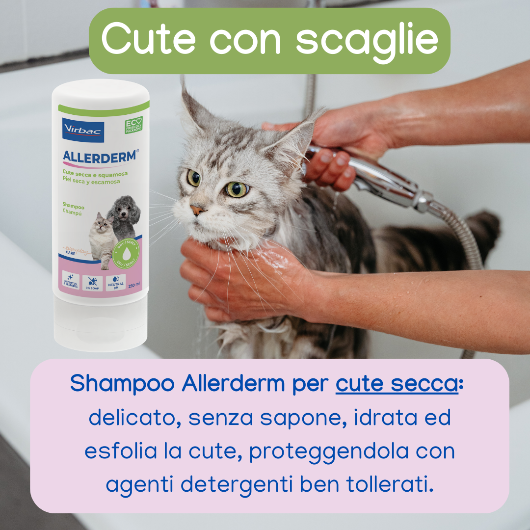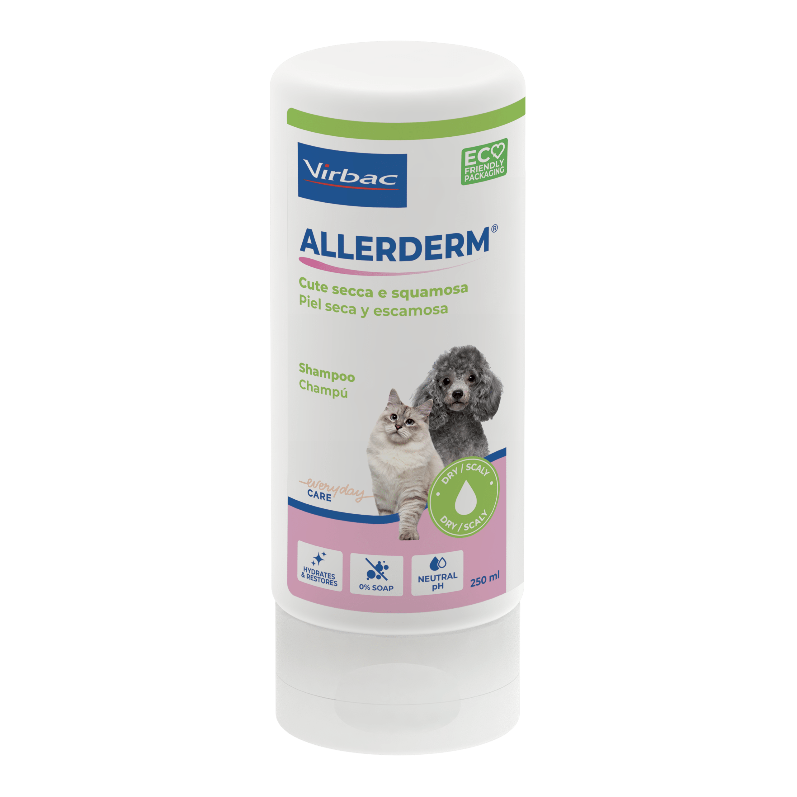 Von kalten Temperaturen bis hin zur Heizungsluft sind unsere Haustiere denselben Faktoren ausgesetzt, die unsere Haut austrocknen können. Allerderm für trockene und schuppige Haut ist ein sanftes Shampoo, das trockene und schuppige Haut beruhigt und für Hunde und Katzen mit normaler bis trockener Haut geeignet ist.