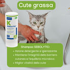 Oily, flaky skin with unpleasant odors is unpleasant for both your pet and you. Sebolytic is a shampoo for dogs and cats that helps combat skin conditions caused by seborrhea and dandruff, including seborrheic dermatitis.