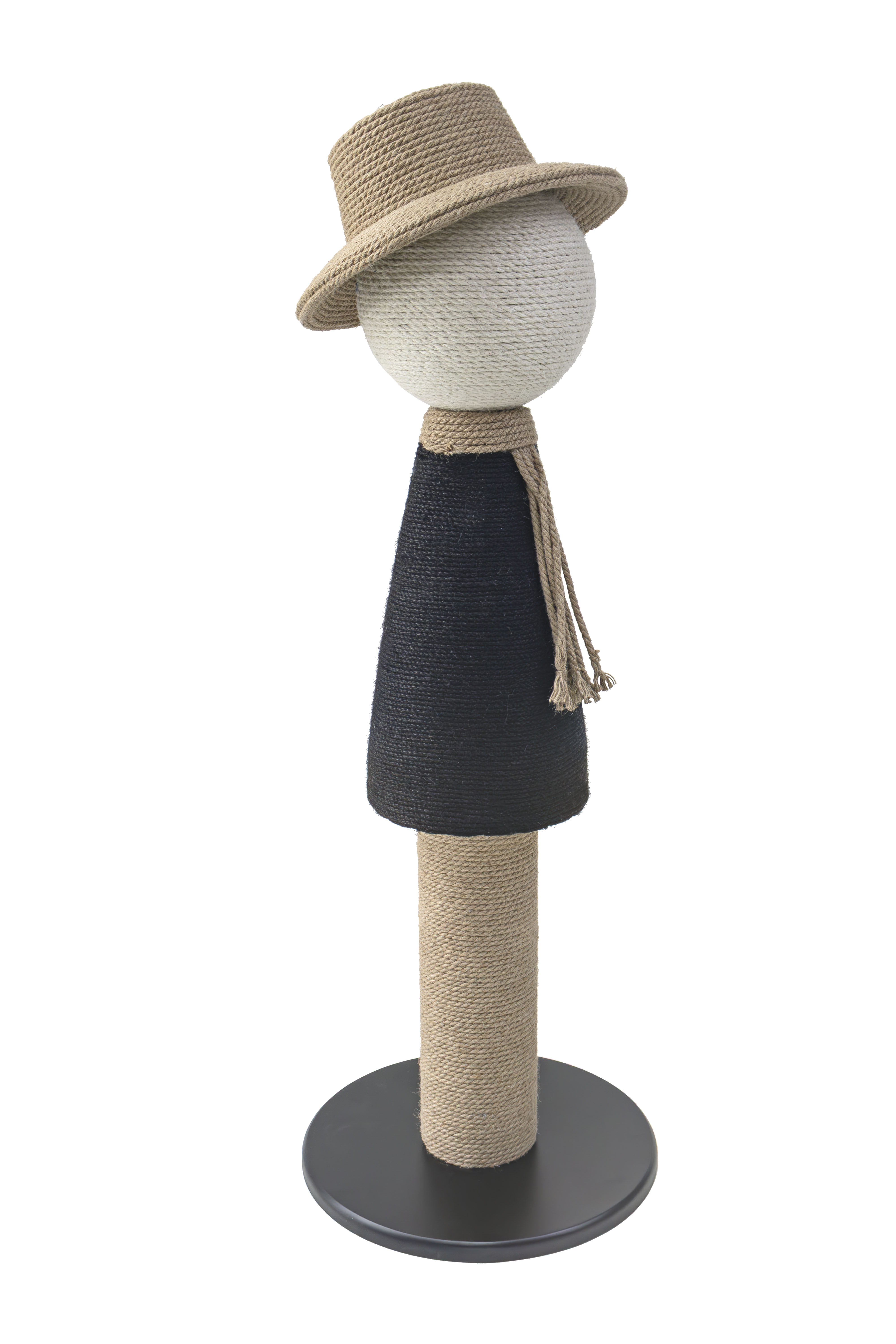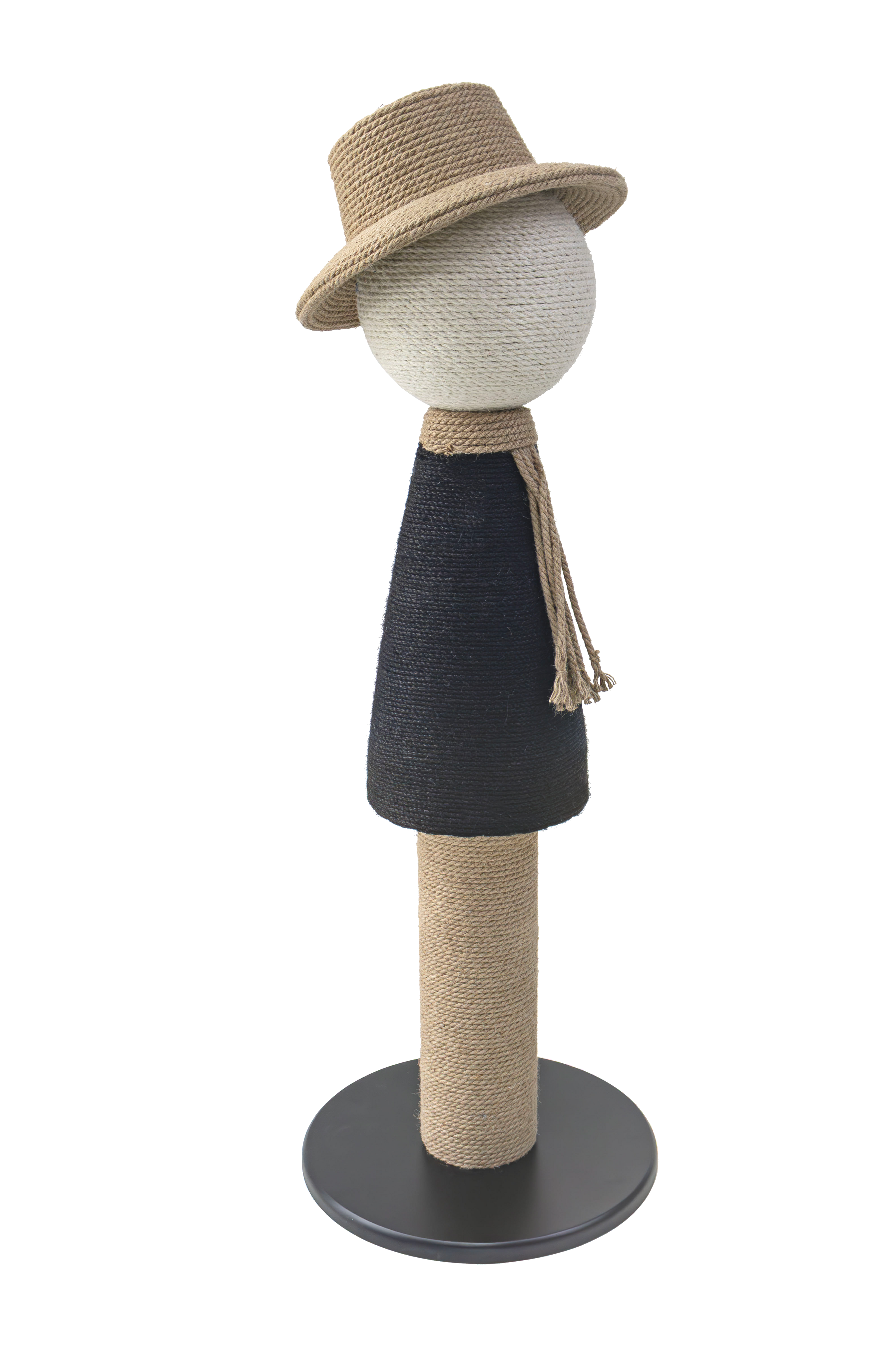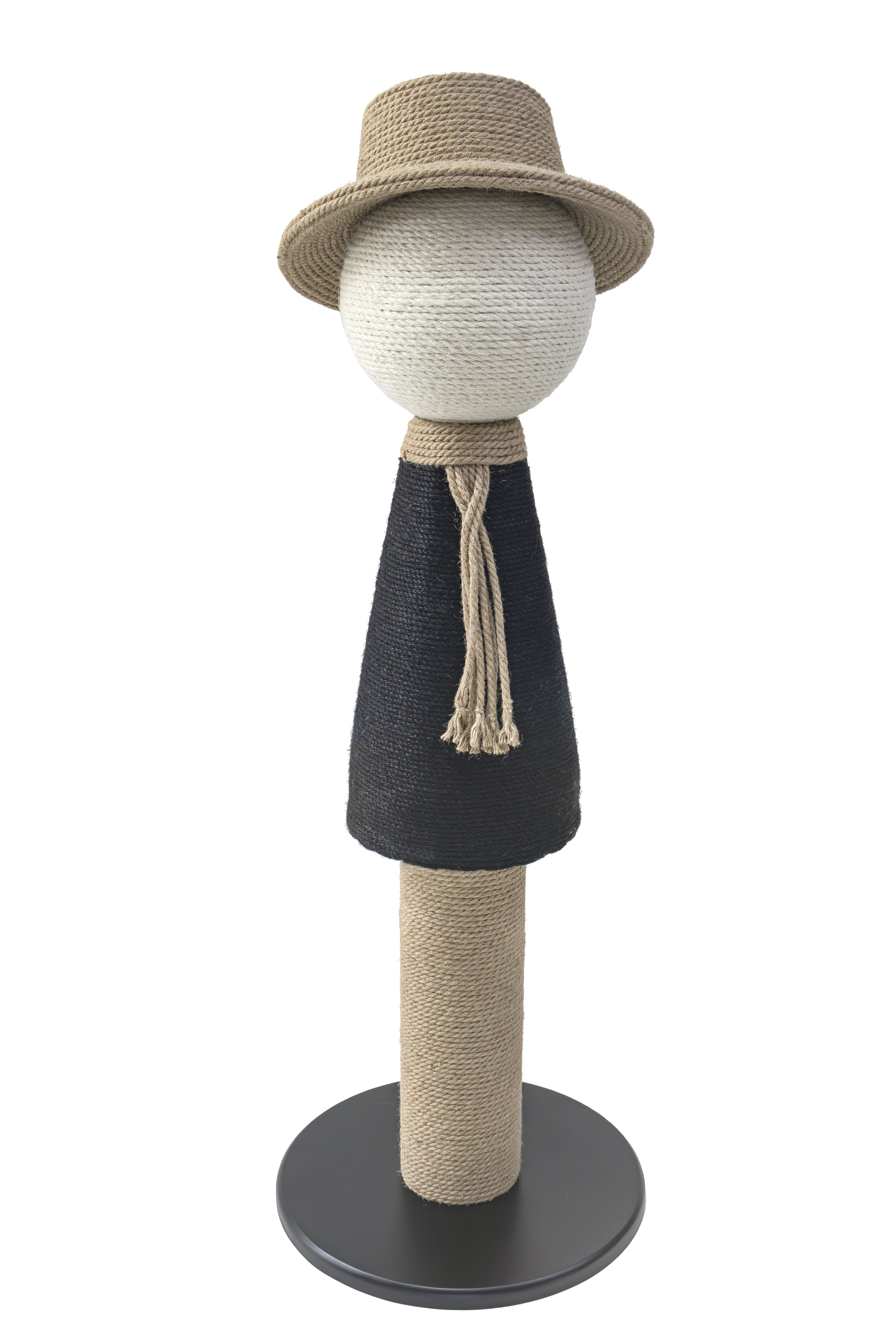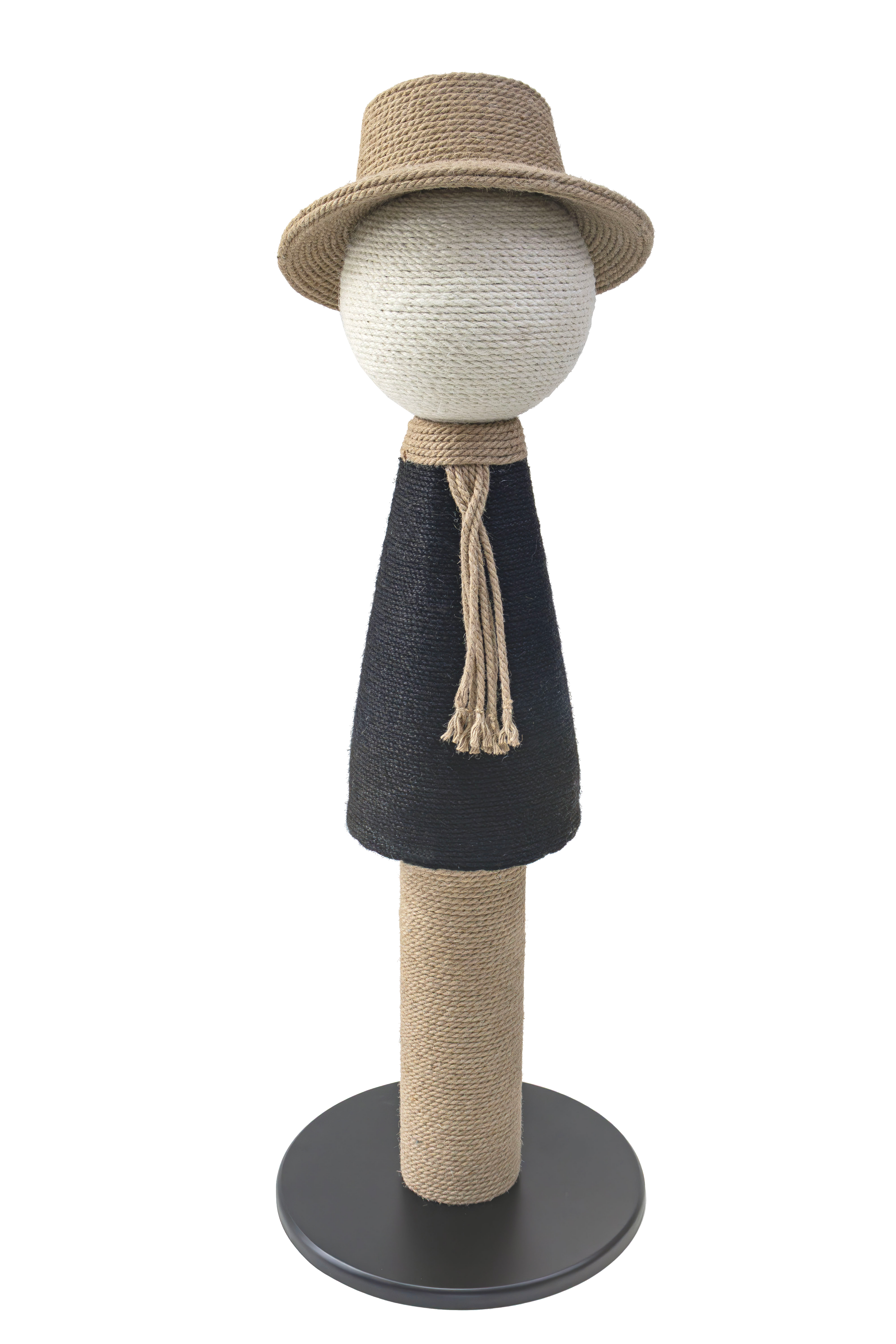 - Structure made of colored sisal rope wrapped around a STABLE solid wood base.